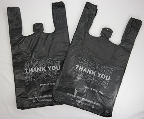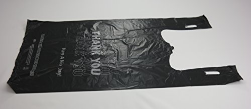 Plastic Bag- Economy 'Thank You' Silver Print Black T Shirt Bag 11.5"x 6.5"x 21.5" 13 mic - 800 bags/case