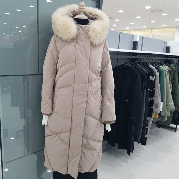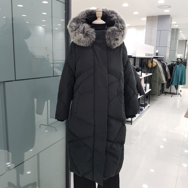 구스투톤퍼 후드롱 패딩 입니다ㆍ?기장 길이감이 길게나온 살짝 루즈한스타일 에 롱 점퍼 입니다