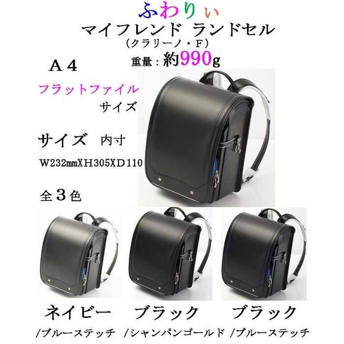 원본상품명: ランドセル?量990g2018年 ふわりぃオリジナル クラリ?ノFランドセルA4フラットファイルサイズ25000日本製ふわりぃランドセルRCP?量ランドセル男の子ランドセル