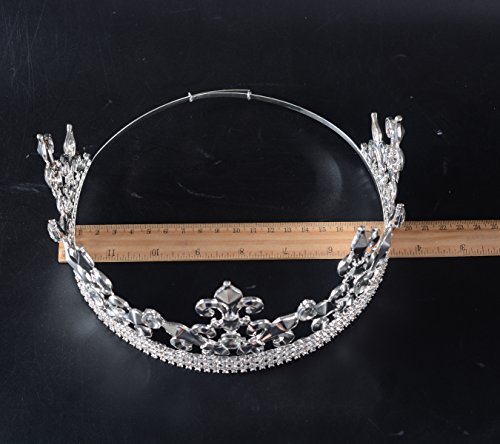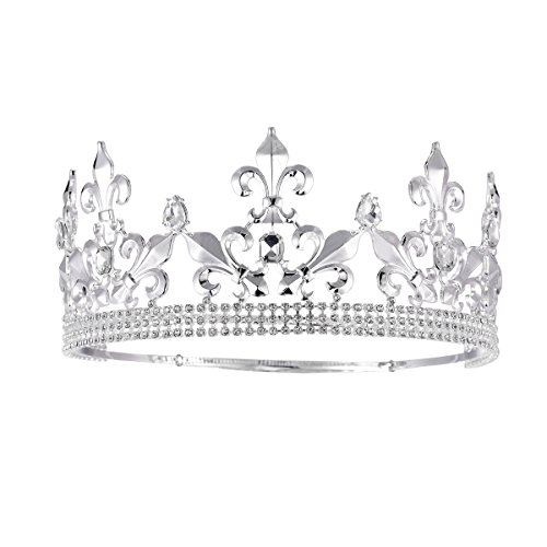 Eseres Adjustable Full Round Imperial Medieval Tiara Fleur De Lis King Crown Silver Finish