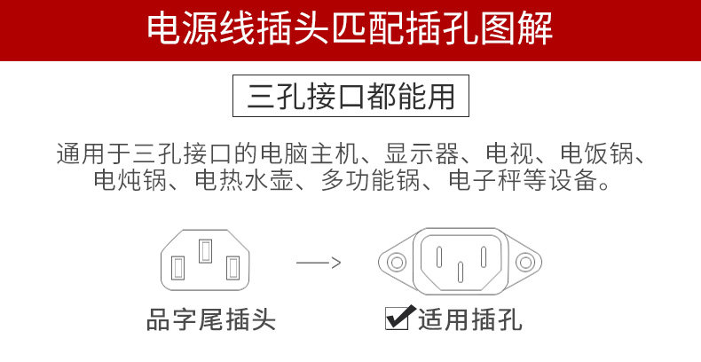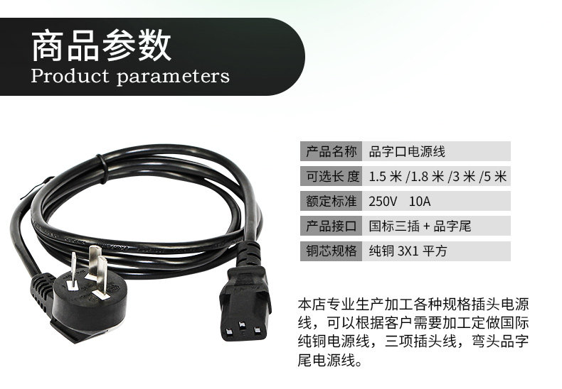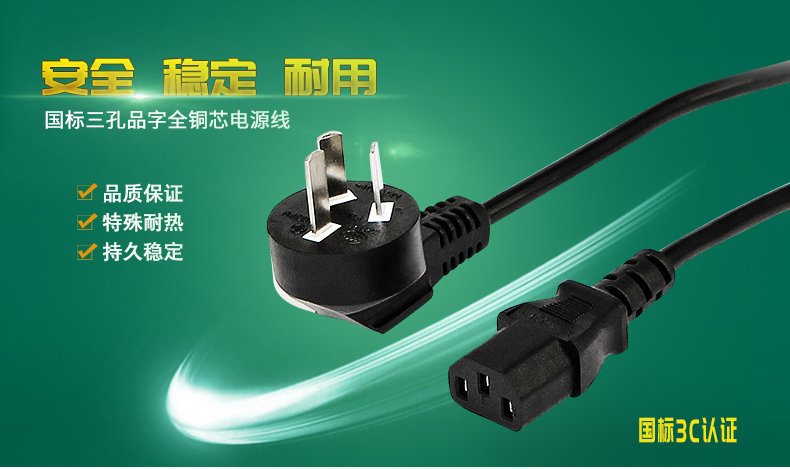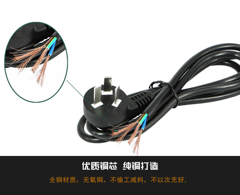 国标纯铜三孔电源线台式电脑主机电源线电饭煲电源线三芯带插头线