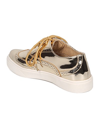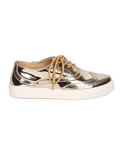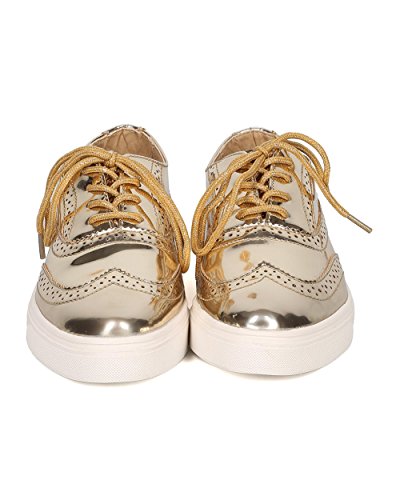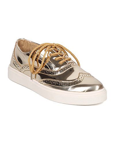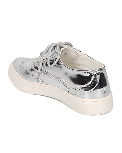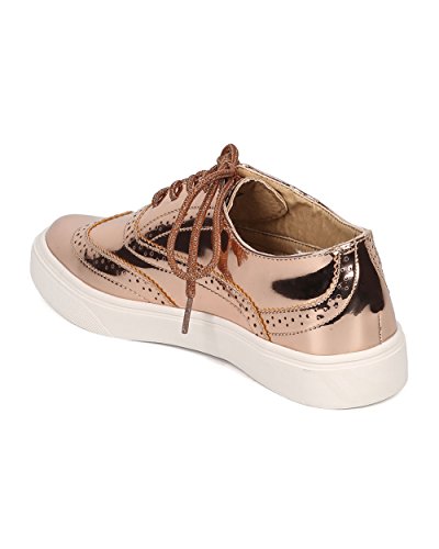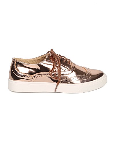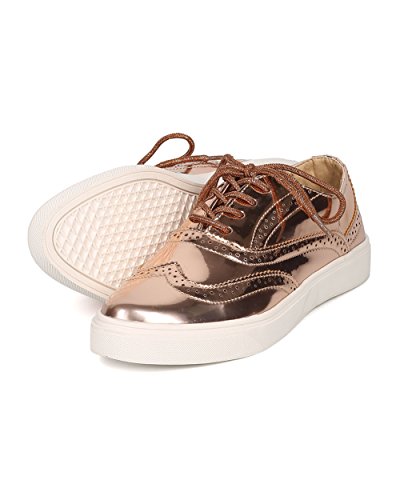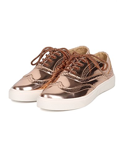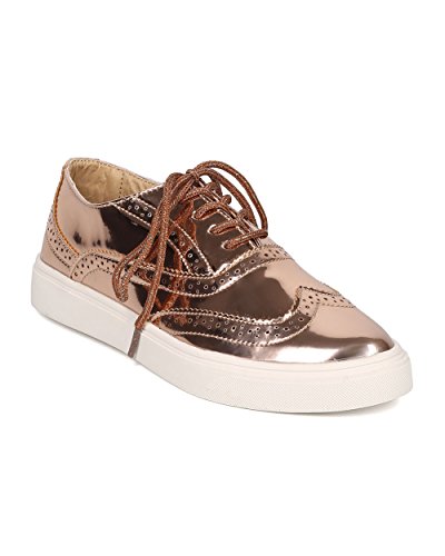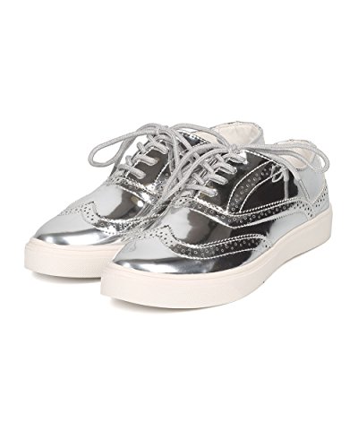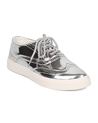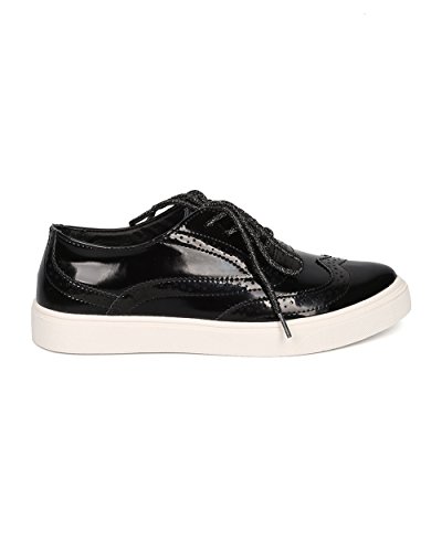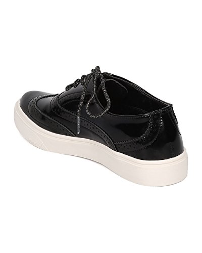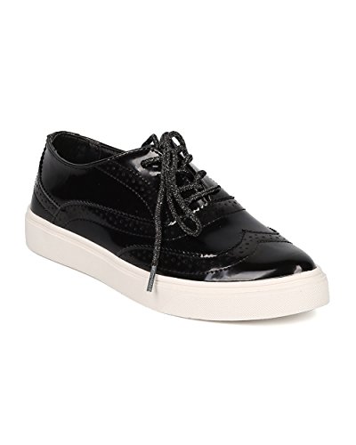 Product Description These oxford sneakers are made with a patent leatherette upper, pointy toe and lace up front. Also made with stitch details, rubber out sole and self tie closure. 0