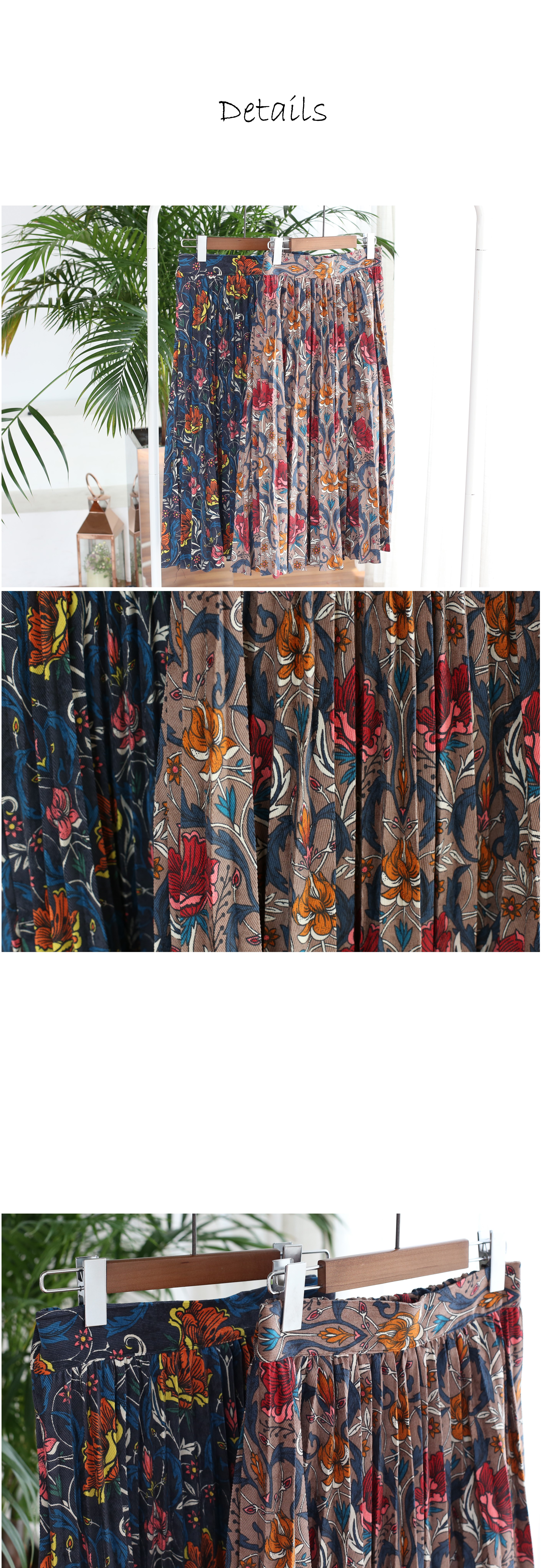 Pleated Flower Pattern Long Accordion Golden Denim Wrinkled Skirt Autumn Retro Trench Date Look