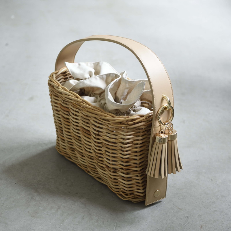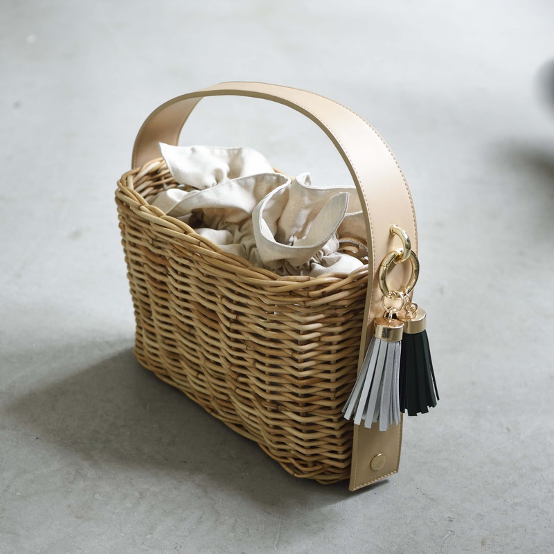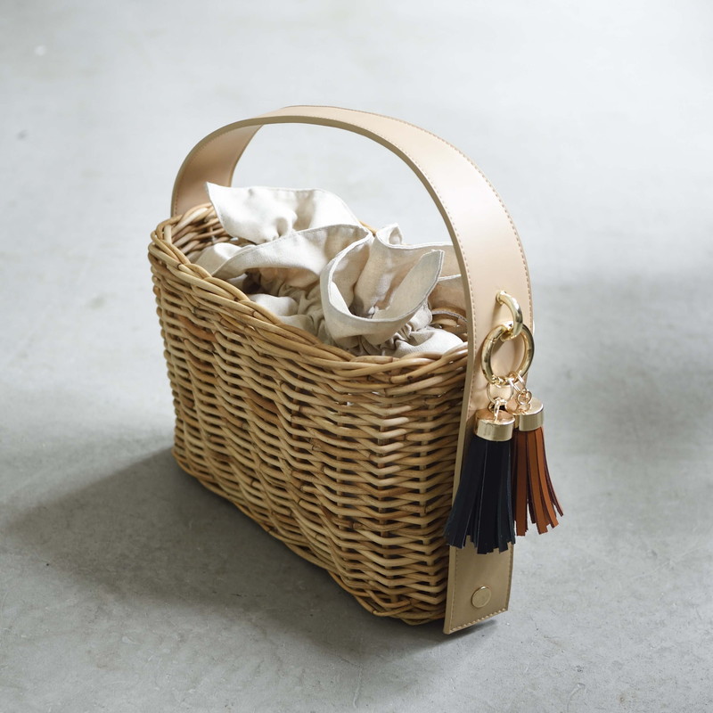 [ Rectangle-Basic ]AMONGOUT の象徴でもあるラタンバッグ、2018年 春夏は4種類の形をご用意しました。こちらの形は、初代から人気で毎シーズン問い合わせの多い、四角型のベーシックなサイズを新たなデザインで復活しました。容量もしっかり入り、形も使いやすいアラログのラタンバッグに、上質な帆布のバッグを被せて使用できるデザインとなっております。帆布バッグを外して付属の革ベルトの持ち手に付けかえれば、かごバッグだけでも使用可能なので、春夏らしい涼しげな印象でお使い頂けます。革ベルトには、タッセルチャームを取り付け可能です。帆布バッグには、太めで高級感のある羊革のロープ状の持ち手がついており、中袋を入れ替えて帆布バッグのみでもご使用頂けます。中袋には内ポケットもついており機能的で、巾着部分の紐も羊革を使用し高級感のある仕様となっております。※今シーズンから、ラタンバッグの持ち手の革ベルトが全型共通のサイズとなりました。他のデザインのお色の違う持ち手を付け替えたり、来シーズン以降の持ち手を取り付けることも可能となります。[サイズ]本体:W30cm × D14cm × H20cm底面:W26cm × D11cm[商品の特性について]AMONGOUTの商品は天然素材でつくられているため、商品によって色合いやサイズが若干異なる場合がございます。1点1点、心を込めて職人さんの手作業でお作りしております。繊細な作りとなっておりますのでご了承にの上、ご購入下さい。