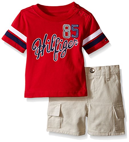 Tommy Hilfiger Baby Boys' Solid Jersey Tee and Brushed Twill Shorts, Red, 12 Months