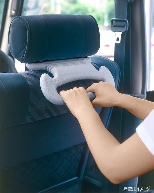車のヘッドレストに簡単装着!お子様やお年寄りの乗り降りをサポートする、補助の持ち手です。レジ袋も取り付けられて大変便利です。