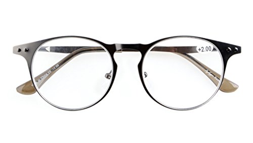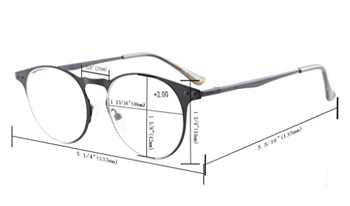 -. Brand : Eyekepper -. Feature : PRODUCTS DIMENSION-Frame material: Metal,Lens width: 1 13/16" (46mm),Frame width: 5 1/4"(133mm),Lens height: 1 5/8" (42mm),Frame height: 1 3/4" (44mm),Bridge (DBL): 5/8"(16mm),Temple length: 5 5/16"(135mm),Spring hinge: Yes,Lenses: Aspheric,Head size: Narrow to Medium / EYEKEPPER METAL ROUND READING GLASSES-the pupil distance(PD) is 59-63mm,the deviation for pupil distance(PD) less than 2mm,the deviation for strength less than 0.02,the deviation for lenses's horizontal line less than 1mm / EYEKEPPER RETRO READING GLASSES-5-pair at 1 low price, Each set is just for one strength, these are not mixed strength.Acrylic Lens and Optically Correct,Full Reading Lenses Not Bifocal,Keyhole Round High Quality Metal Frame with Spring-Hinge,Yellow tinted lens for computer. Grey tinted lens is full sun readers not bifocals. / QUALITY METAL FRAME -FDA Registered Reading Glasses and Eyewear,Accord with ANSI Z80.3-2010,Accord with BS EN ISO 12312-1:2013 and EN14139:2010,Accord with AS/NZS 1067:2009,Top quality metal frame,lenses and have spring-loaded hinges / LIFETIME BREAKAGE WARRANTY&30 DAY MONEY BACK GUARANTEE: In case any broken problem happens, contact the seller of Eyekepper without hesitation to solve the problem until satisfaction. Eyekepper provides lifetime after sale service for all Eyekepper reading glasses. Customers can return and get refunded for any reason. You have no risk to try -. Label : Wenzhou Cofly Optical Co.,Ltd -. Manufacturer : Wenzhou Cofly Optical Co.,Ltd -. ProductGroup : Health and Beauty -. ProductTypeName : PERSONAL_CARE_APPLIANCE -. Publisher : Wenzhou Cofly Optical Co.,Ltd -. Studio : Wenzhou Cofly Optical Co.,Ltd -. Title : Eyekepper 5-pack Quality Metal Round Frame Spring-Hinge Temples Reading Glasses Include Sun Readers Computer Eyeglasses