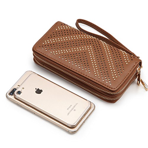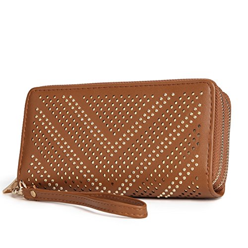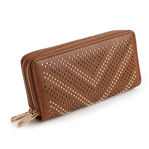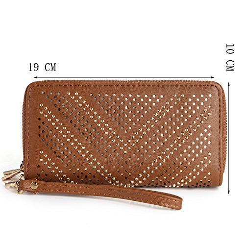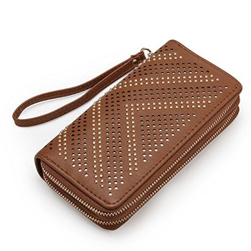 Women Large Capacity Wallet Double Zipper Money Holders Rivet Purse