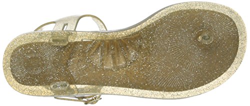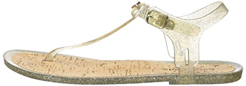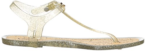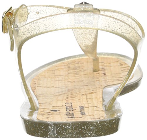 Flat jelly sandal featuring T-strap thong with spade logo at cross-strap