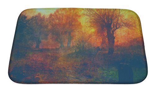 Gear New No Slip Microfiber Memory Foam Landscape Painting Showing Creepy Forest on Dark Autumn Day Bath Rug Mat, 24" X 17"