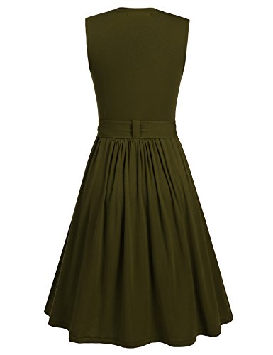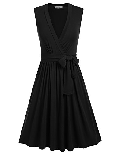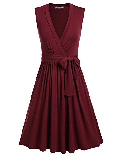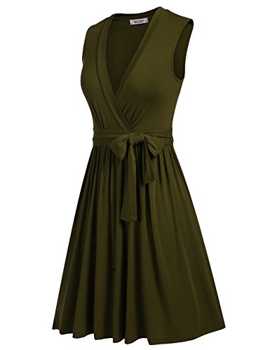 wrap style, with belt, V neck, Sleeveless, pleated waist, swing style, flare dress,midi length