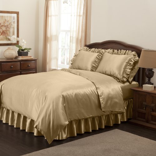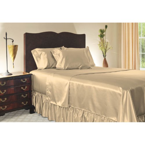 Satin Bedskirt (Twin, Champagne 14" Drop) 100% Polyester Satin Dust Ruffle with Platform