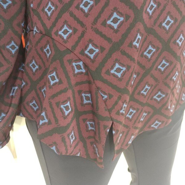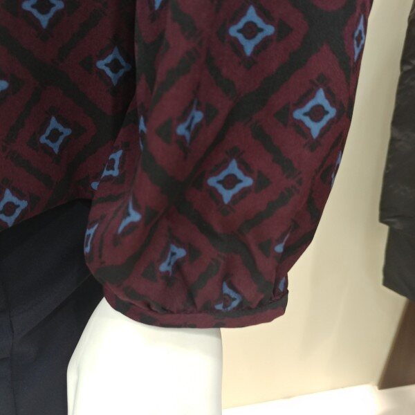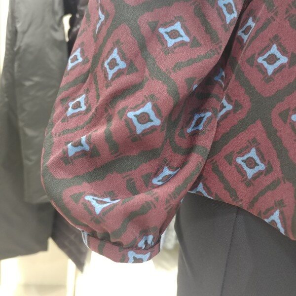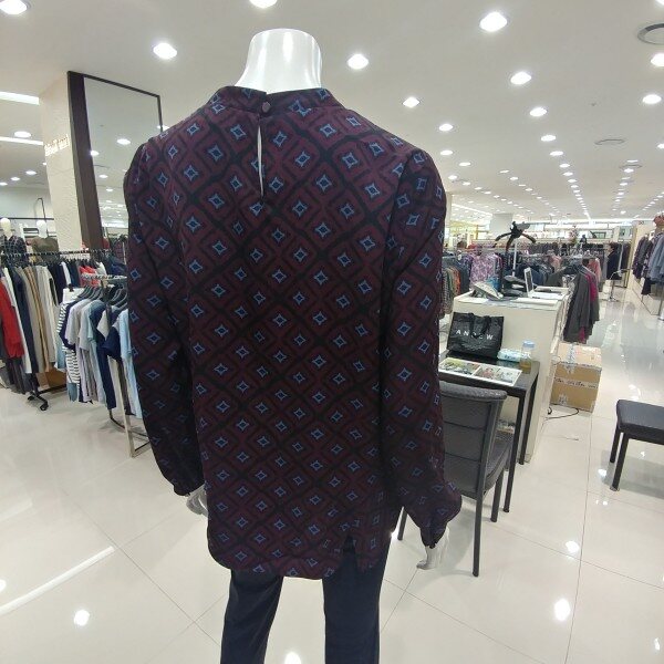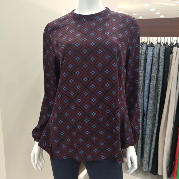 차분한 분위기의 라운드넥 스타일이며 소매의 볼륨장식이 돋보입니다.무늬도 고급스럽고 옆라인도 센스있게 분위기를 연출할수있다.