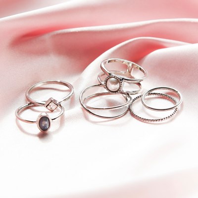 6개의 반지를 한번에 만날수 있는 득템 찬스~아르뉴 레이어드 반지 세트를 소개합니다.각각다른 사이즈와 디자인으로 구성된 반지세트에요.실반지타입과, 포인트반지로 구성되어 두개의반지를 레이어드해서착용하셔도 되고여러손가락에 포인트로 레이어드해서 착용하셔도 좋답니다~데일리하게 착용하기에도 손색이없는 디자인이랍니다.