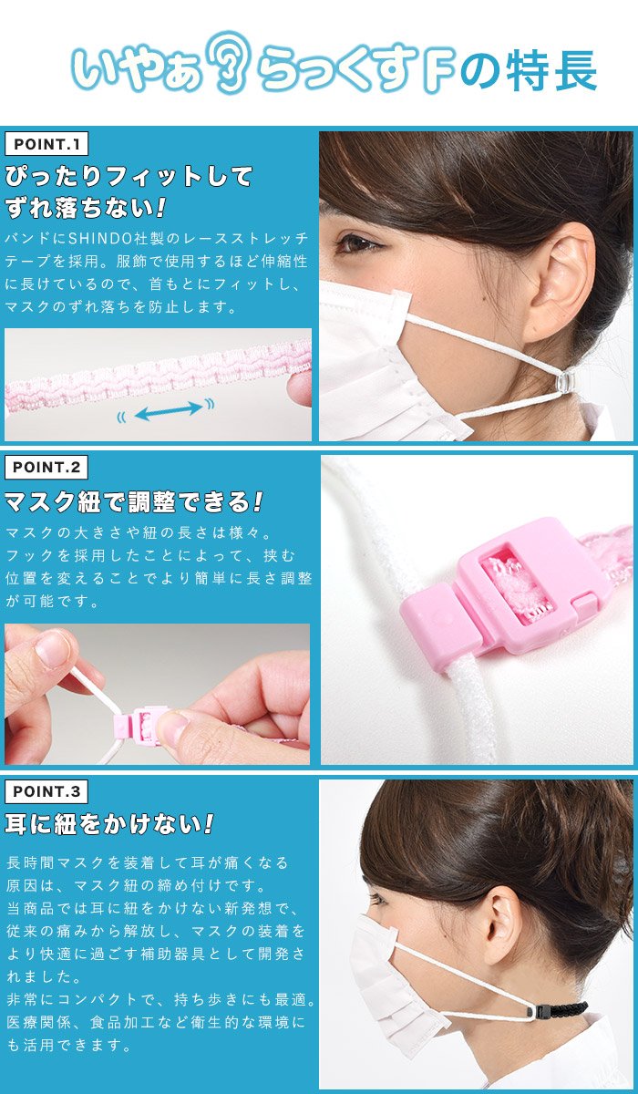 I work on a mask on the job, but as expected it burdened my ears and the skin caused inflammation. When I look at the image, I was worried that I will fall out, but when I try using the product, it will not shift. I will not touch the ears directly, so I would like to purchase with spare. If it raises one, since it is a small product, I wish I could put it in the post even if I was absent. . .