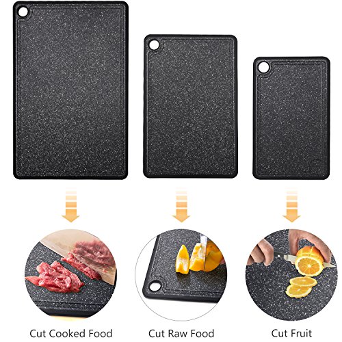 Cutting Boards, Plastic Kitchen Chopping Board Set with Juice Groove (3-Piece Set) - Unique Marble Appearance Design, Anti-skid Package Edge Design, Dishwasher Safe and Multiple Sizes