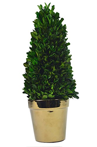 Galt International Tower Topiary Plant with Metallic Gold Pot, 13.5-Inches Naturally Preserved Real Boxwood