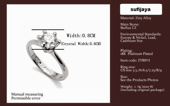 CINCIN BERLIAN Platinum Plated Princess Cut Diamond Wedding Ring Made with Austrian Crystals Full Size JEW SJA0846535262 zyj qty0