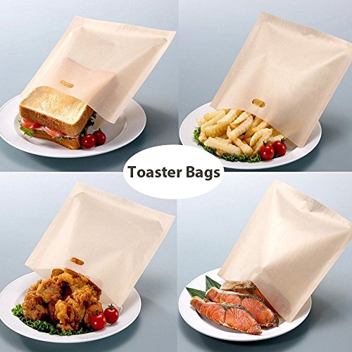 Product Description Toaster/ Toaster Oven/ Microwave/ Grill/ Oven Toasted sandwiches in just 3 mins.Make up sandwich as normal. Place the sandwich into the toaster bag and then put the bag(with the opening facing up)into the toaster amd beging cooking. Toaster bags are reusable and can be washed in warm soapy water or placed over the prongs of a dishwaster.