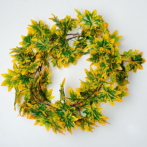 Yiliyajia Artificial Maple Leaf Ivy Hanging Garland Mixed Fall Colors Long Maple Vine Leaves for Wall Decoration (Green+Yellow)