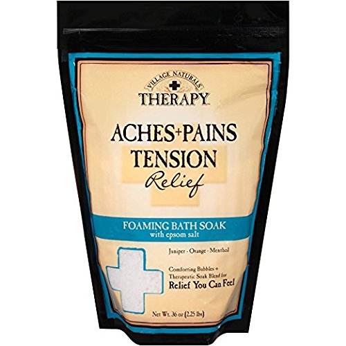 Village Naturals Therapy Aches+Pains Tension Relief Foaming Bath Soak with Epsom Salt offers a unique blend of powerful therapeutic ingredients specially formulated to provide fast-acting relief you can feel. Concentrated formulas and soothing menthol work together to relax your body. Whether you have sore muscles or daily tension, you'll feel the difference. Restore + relax while soaking in a powerful blend of essential oils extracts including juniper, orange, and cooling menthol. Epsom salt (magnesium sulfate) helps to ease stressed muscles, while relaxing in a softly foaming bath comforts your body.Feature
