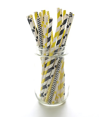 -. Title : Bumblebee Paper Straws, Black & Yellow Drinking Straws (25 Pack) - Summer Honey Bee Party Supplies - Stripe, Polka Dot, Chevron Straws