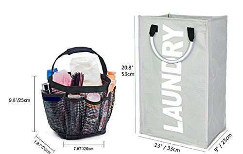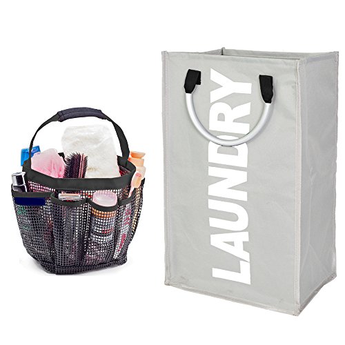 PUTING 40L Laundry Hamper with Alloy Handles Pop-up Foldable Self-Stand Laundry Bag Bin for Home College Travel, Mesh Shower Caddy, Quick Dry Shower Tote Bag Set