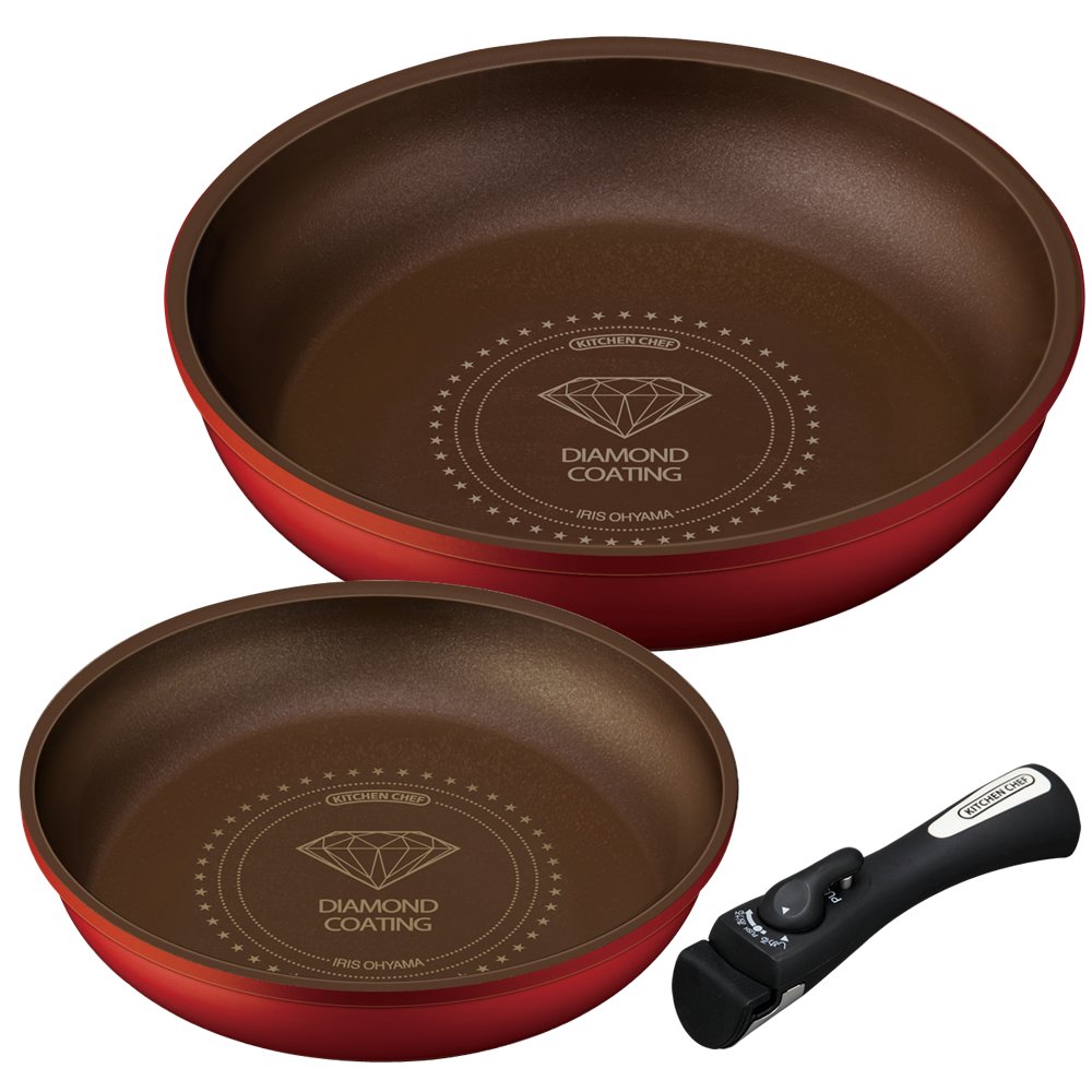 IH correspondence Orange set taking. Iris pot frying pan set diamond-coated pan handle 3 H-IS-SE3