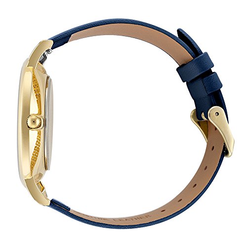 Calling all cool girls: meet Stella, the sleek and simple style with contemporary touches and downtown edge. A gold case with a clean white face is accented by subtle gold roman numeral markings and a navy leather band. In other words, it nails that whole "effortless" thing. - Genuine leather navy interchangeable band (fits up to 8.5" wrist, adjustable) - Hand-crafted Japanese watch movement - Width of case: 38mm - Thickness of case: 8.7mm - Band width: 18mm - 2-year warranty