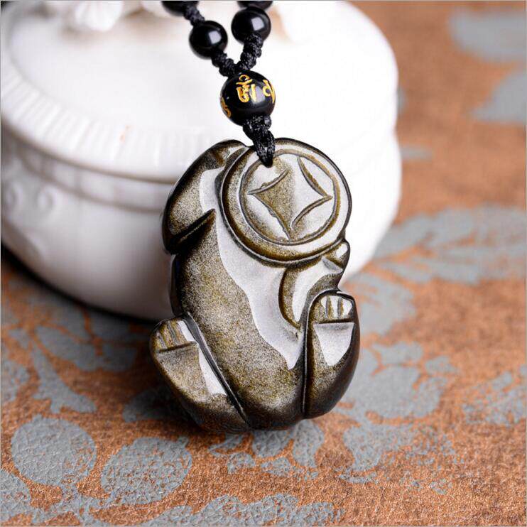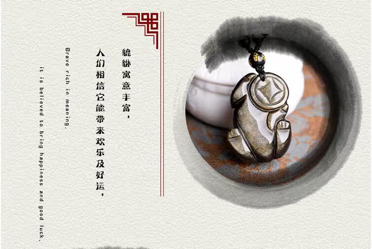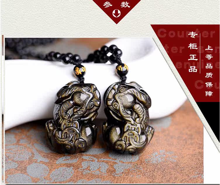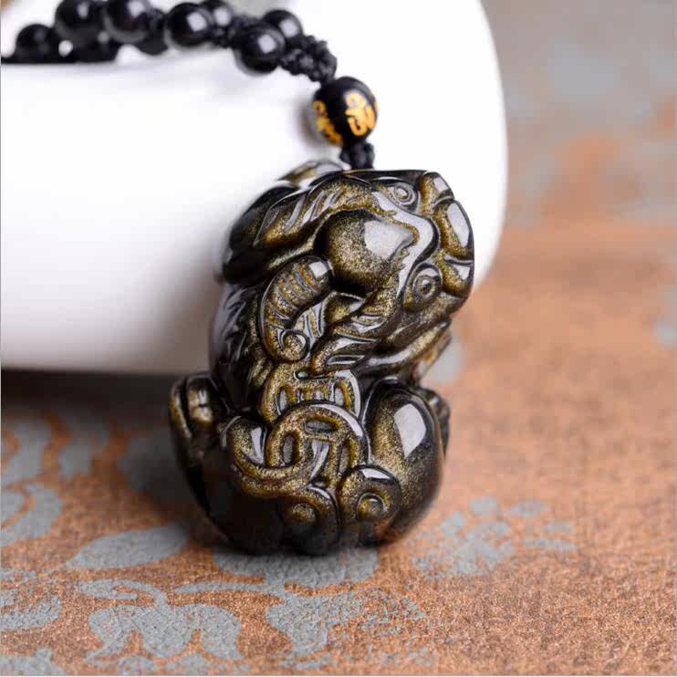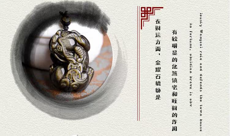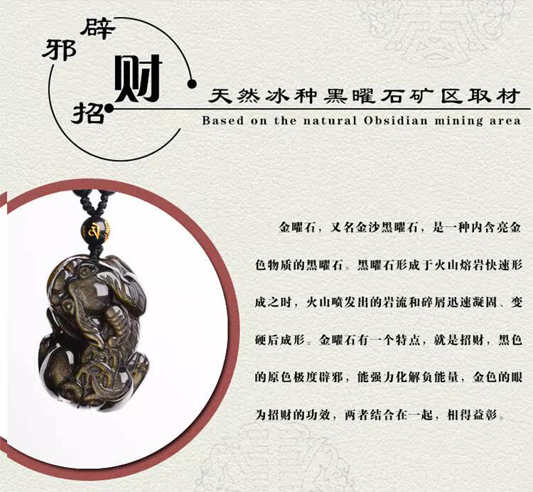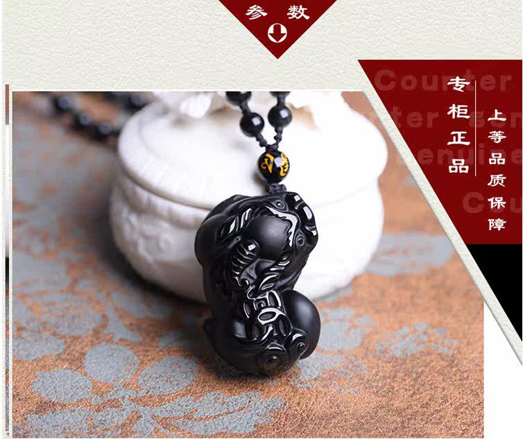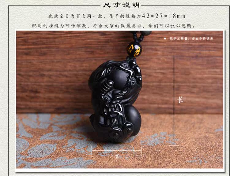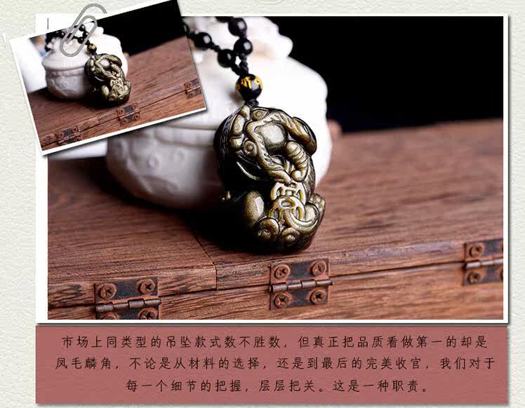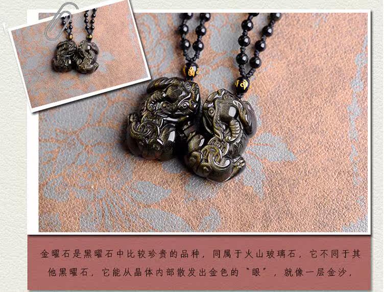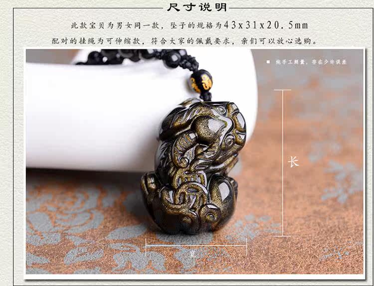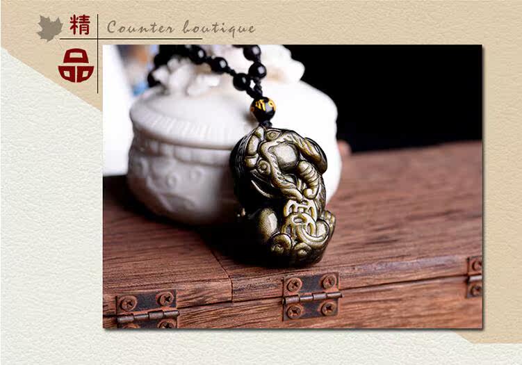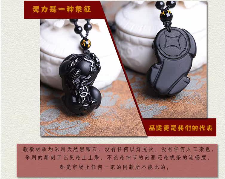 开光天然金曜石貔貅吊坠单貔貅冰彩黑曜石小弯头貔貅项链招财礼物