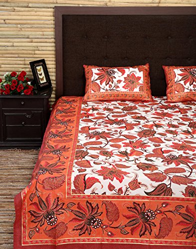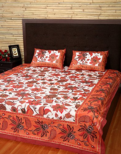 White & Cinnabar Red Bed Sheet With Cotton Material & Size Approximately 107x84 Inches ( 272x213 cm )