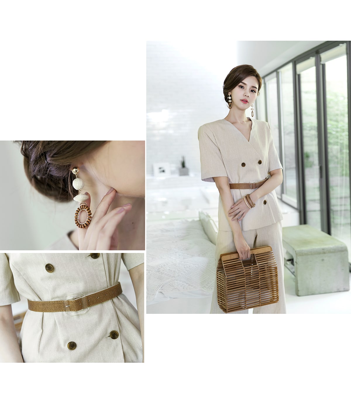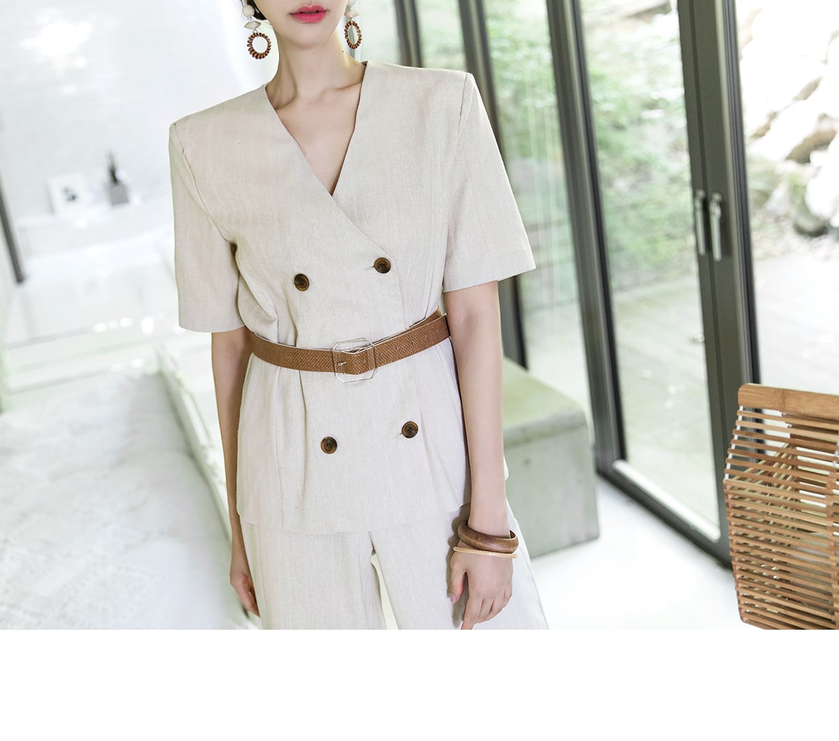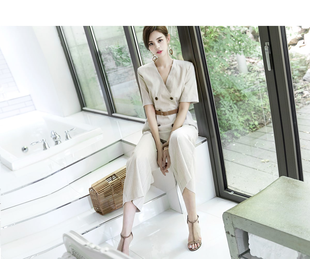 J-47970 텐디 더블 노카라 린넨 자켓 Beige