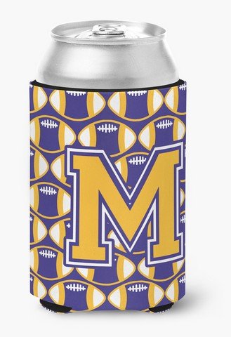 Caroline's Treasures CJ1064-MCC Letter M Football Purple and Gold Can or Bottle Hugger, Multicolor