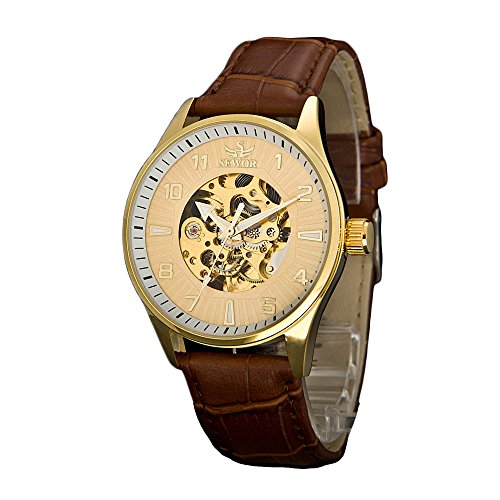 -. Feature : 21-Jewels Mechanical Self-Winding Movement / Screwdown See-Thru Caseback / Genuine Leather / Stainless Steel Case / Steampunk style