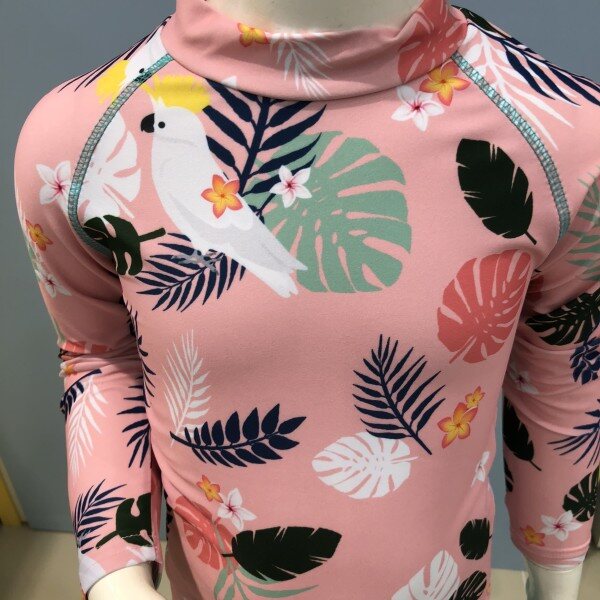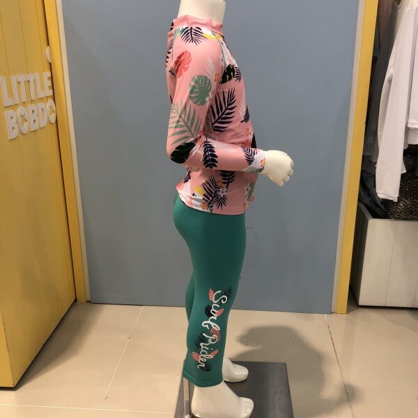 야자수모양의 래쉬가드입니다상의는 핑크 색상이며 하의는 밝은 민트색상입니다실물로 보면 더욱 더 밝고 환한 색상이구요더 예쁘답니다 ^^