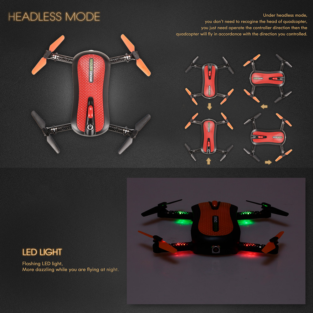 This HC652W RC quadcopter is really cool with foldable wings, which is easy to carry. The wifi camera and the altitude hold design could give you real-time and stable image. And you can just easily control the drone by the phone as well as the controller. Come and get this multi-functional drone!