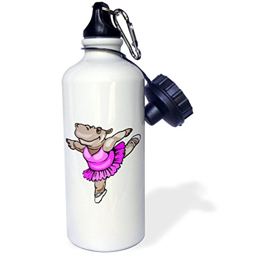 3dRose Hippo Ballet Dancer Sports Water Bottle, 21 oz, White