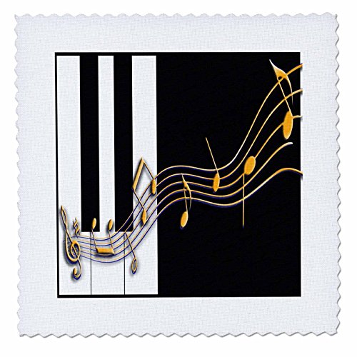 3dRose Gold Music Notes on Piano Keys Quilt Square, 6 x 6"