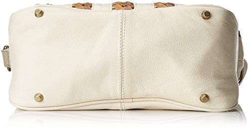-. Feature : Large handbag with two-tone woven leather strips inset at front / Tube top handles and removable shoulder strap / Pockets: 1 interior zip, 2 interior slip