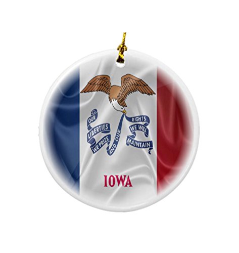 Rikki Knight Iowa State Flag Design Round Porcelain Two-Sided Christmas Ornaments