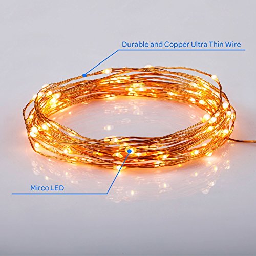 100 Bright LEDs Lights on 33 Ft Long Ultra Thin Wire Between LED Bulbs. Total String Over 33 FEET.