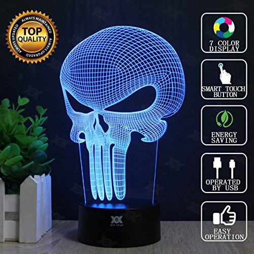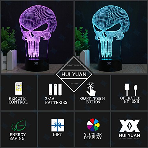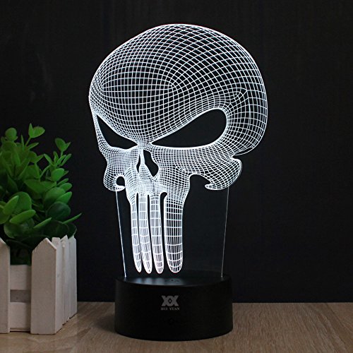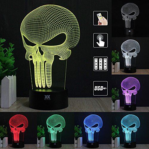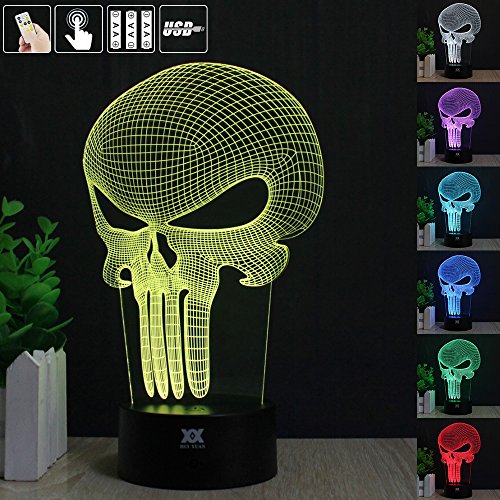 Skull 3D Acrylic LED Night light 7 Color Touch Table Desk Lamp Xmas Gift (Remote & Touch)