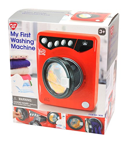Authentic looking mini wash machine to develop your budding little housewife and househusband. Door opens and closes like any real wash machine does. Watch the clothing spin and spin. You'll hear the sounds of the wash machine mixed with the exciting sounds of your toddler.