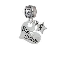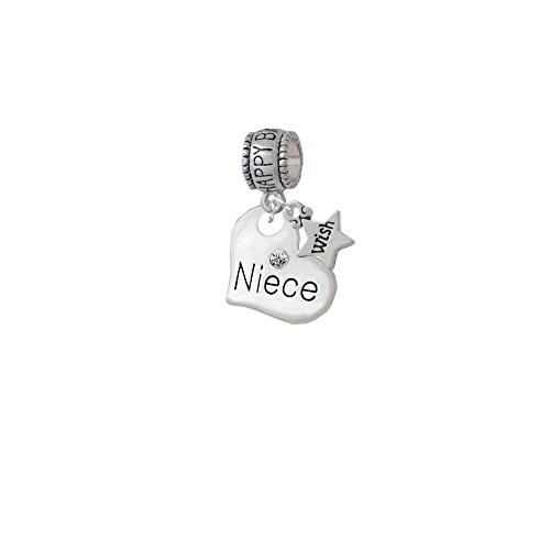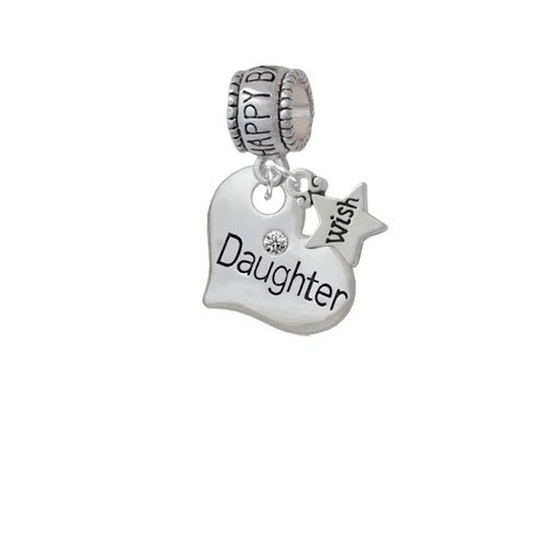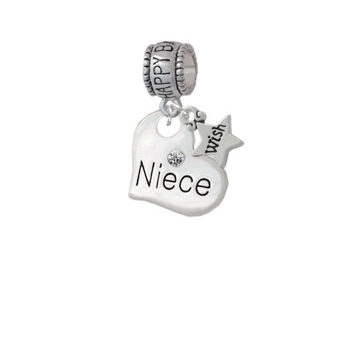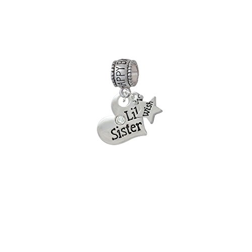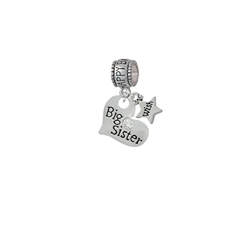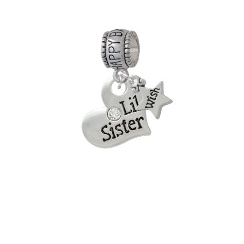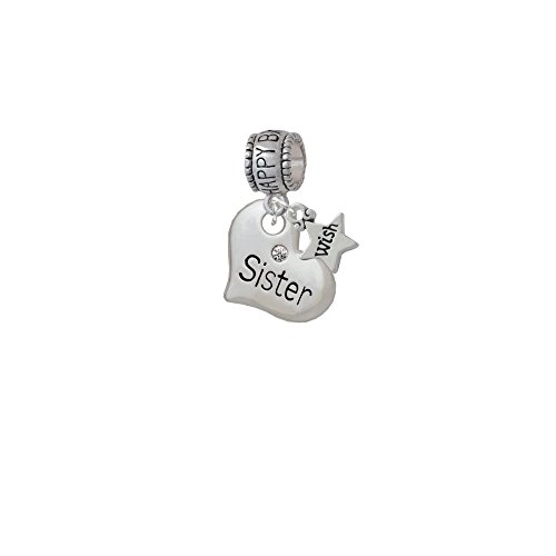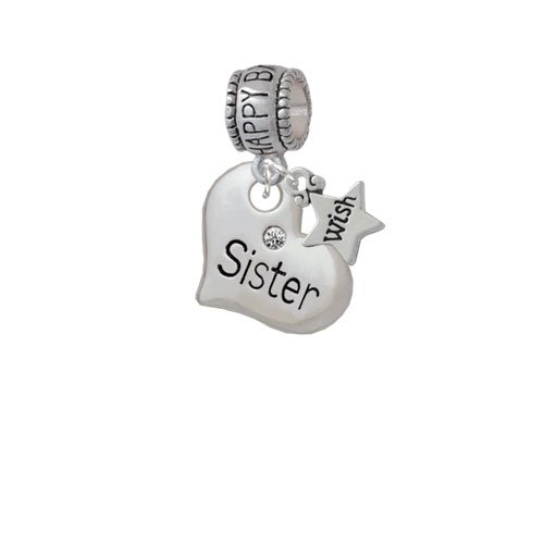 - Feature : Silver Tone Large Family Heart with Clear Crystal Happy Birthday Charm Bead with Wish Star. Choice of: Aunt, Big Sister, Lil Sister, Sister, Grandmother, Godmother, Mom, Mother, Niece, and Wife. / Charm size is approx. 0.6 x 0.74 x 0.13 inches (HxWxD) including loop. / Happy Birthday Charm Bead is approx. 10.5x7x10.7 mm (HxWxD). Hole size: 5.5 mm / Mini Wish Star is approx: 9.5x9 mm (HxW). / Celebrate the day with a special Birthday Wishes Charm Bead. Just add candles. Also makes a great pendant.