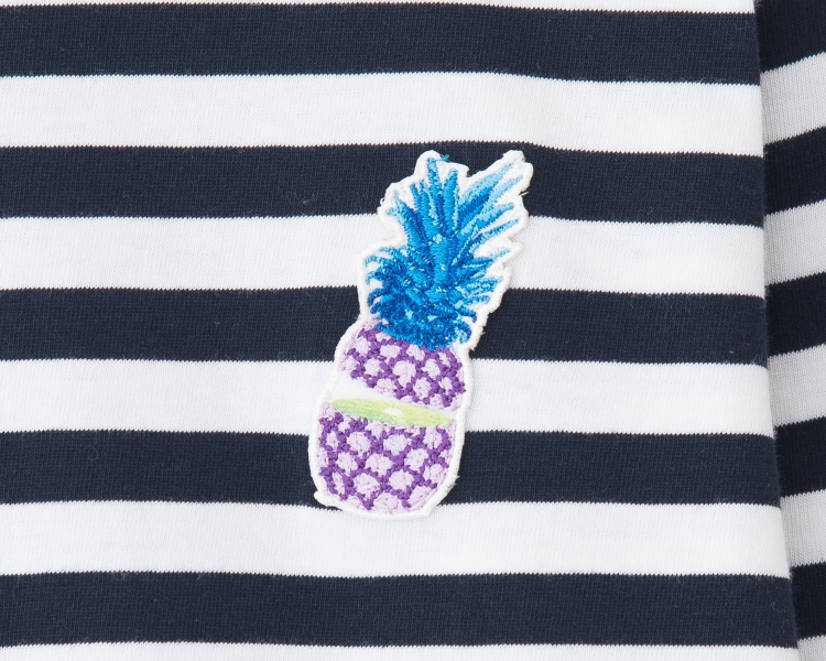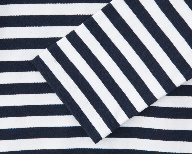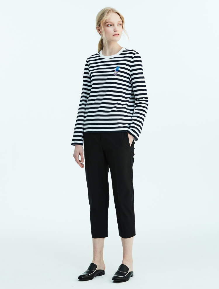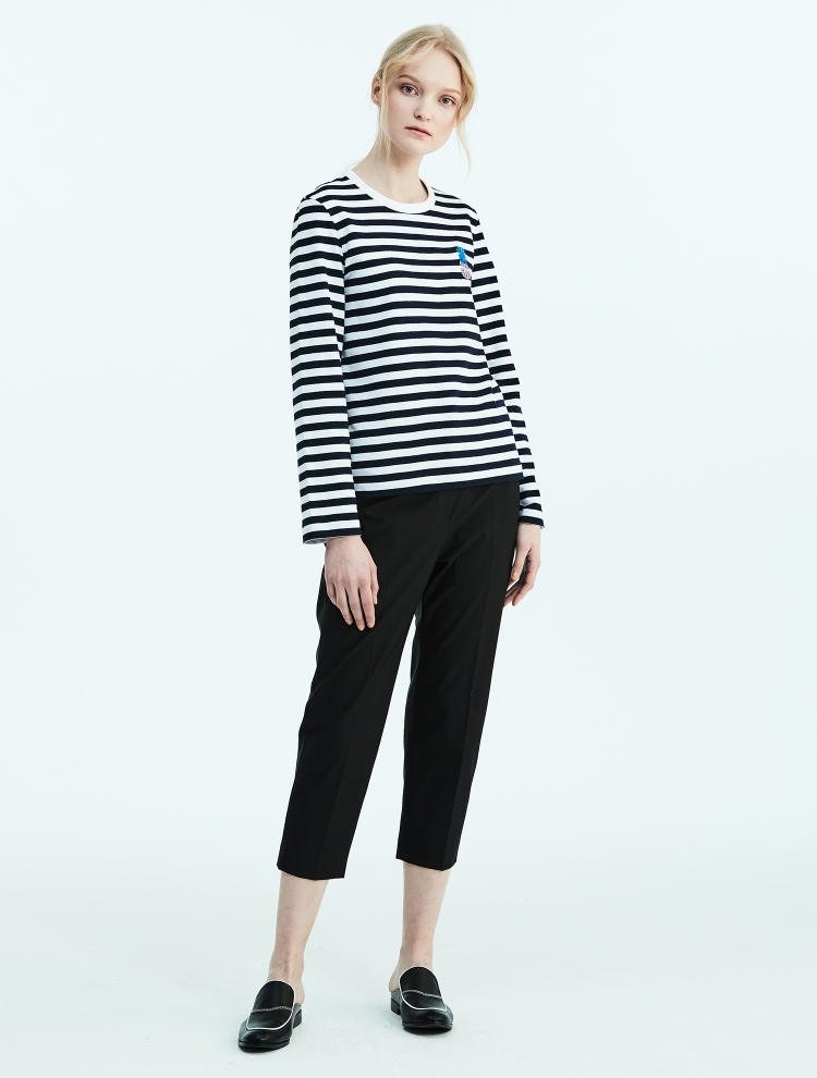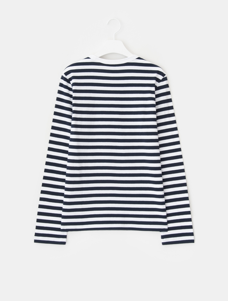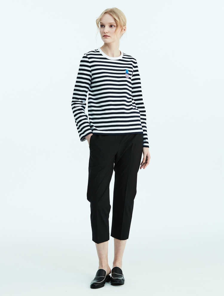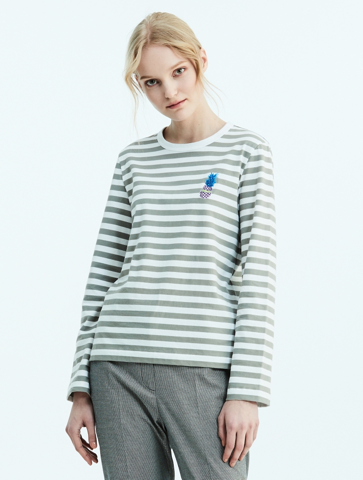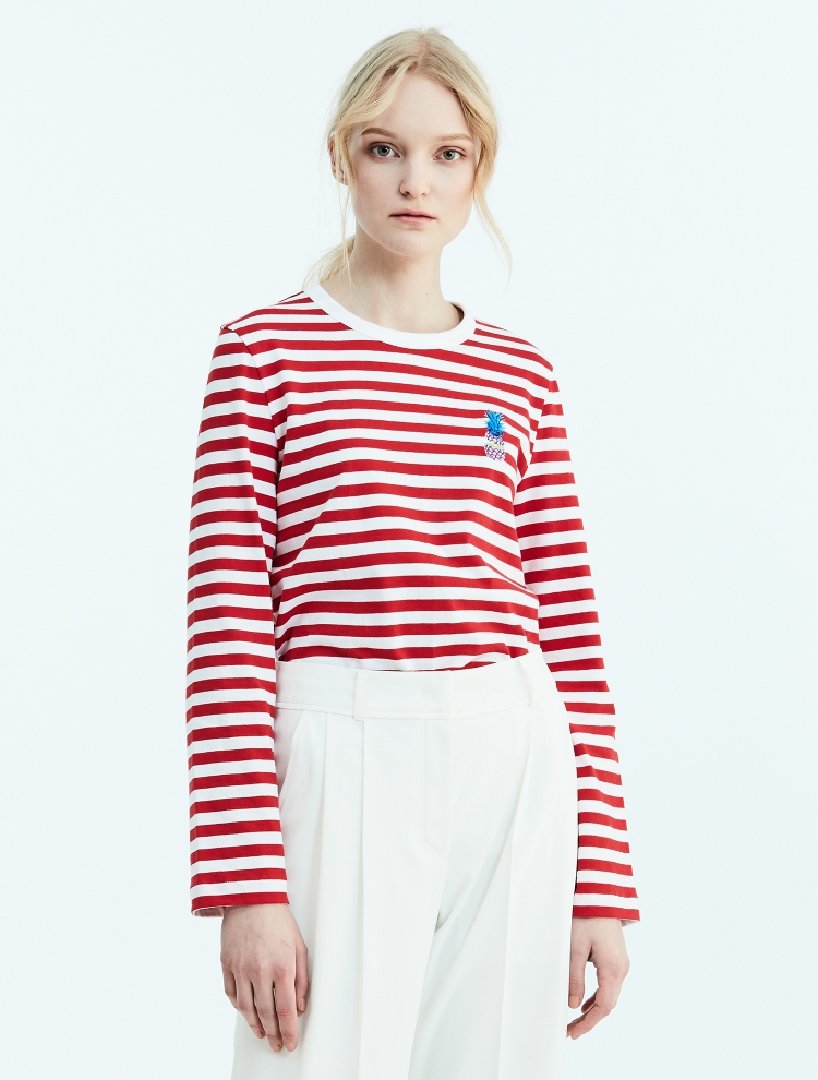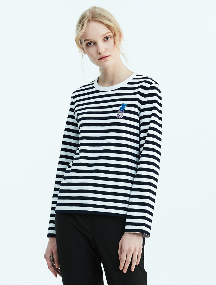 - 베이직한 실루엣의 스트라이프 패턴을 더한 캐주얼 티셔츠입니다.