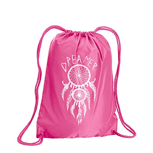 Product Description This durable and stylish nylon tote features "Dreamer" on a cinch pack tote with white ink. Bag comes in small and large sizes and is made of a durable 210 Denier nylon and has color-matched draw cords. Printed in the USA on an imported bag. 0