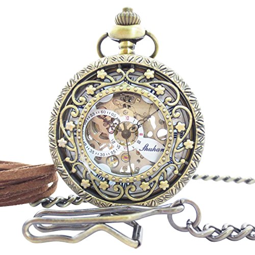 -. Title : 手巻き式 懐中時計 フックチェーン + ボールチェーン/ 革紐 + 化粧箱 セット