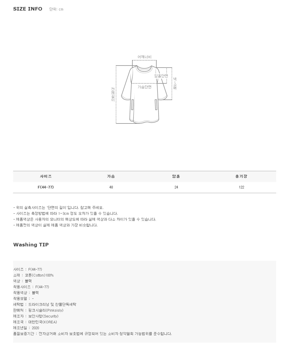 - ^ 암홀부분이 깊어 여유가 있으니 이너에 신경써주세요~! FABRIC TIP 코튼100% 가볍게 물빨래해주시면 됩니다~ 하지만 색깔별로 구분해서 세탁하셔야 흰옷에 물들지않고 색상이 선명하게 유지된다는 점 기억해주세요 ^^