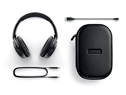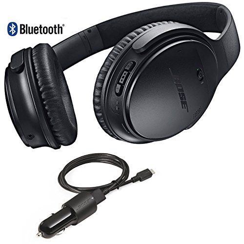 -. Feature : This Bundle contains 2 items: (1) Bose QuietComfort 35 Bluetooth Wireless Noise Cancelling Headphones - Black ; (1) Bose Bluetooth Headphones Car Charger / Industry-leading noise cancellation makes quiet sound quieter and music sound better / Wireless connectivity to your devices through Bluetooth and NFC pairing / Up to 20 hours of wireless listening per charge, and 40 hours when wired / Premium materials make them lightweight and comfortable for all-day listening Bose