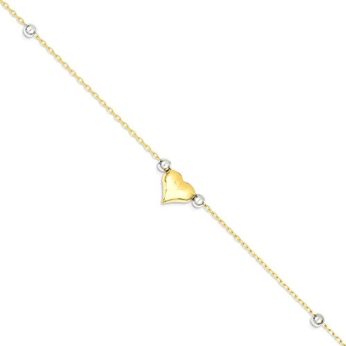 ICECARATS DESIGNER JEWELRY 14K TWO TONE YELLOW GOLD HEART BEADS ANKLET FOR WOMEN ANKLE BEACH CHAIN BRACELET